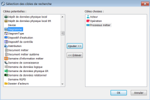 3. Dans la fenêtre Sélection des cibles de recherche, sélectionnez les types d'objets sur lesquels vous voulez lancer une recherche puis cliquez sur Ajouter.