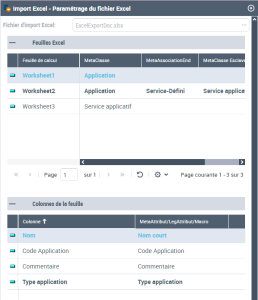 L'assistant affiche les feuilles et colonnes détectées dans le fichier.