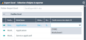 Sélectionner les objets à exporter au format Excel