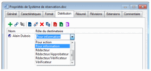 6. Cliquez dans le champ Rôle du destinataire et à l'aide de la liste déroulante sélectionnez le rôle que joue chaque destinataire.