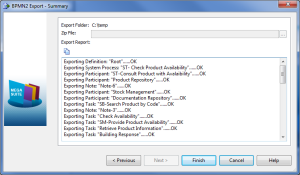 • Zip export files into a single zip file: this option enables to add all exported bpmn files into a single archive file (zip file). Some BPMN modeling tools accept only zip files as import BPMN file.