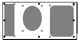 Avec les commandes Espacer > Horizontalement les centres et Verticalement les milieux, la distance entre les centres des trois éléments graphiques devient identique.