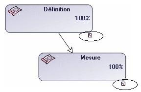 Par exemple, lorsqu'un objet qui figure dans un diagramme est décrit par un ou plusieurs autres diagrammes, un indicateur d'état apparaît sous la forme de l'objet. Cet indicateur rappelle que vous pouvez faire un zoom sur l'objet.
