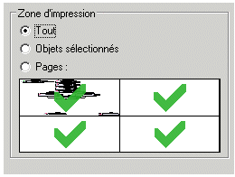 Le cadre Zone d'impression comprend le nombre de pages précisé dans la fenêtre Mise en page. Par défaut, toutes les pages sont sélectionnées.
