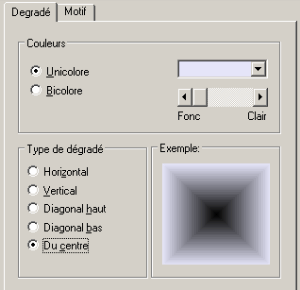 Le cadre "Exemple" permet de visualiser à quoi correspondent les types de dégradé proposés.