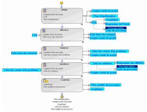 Dans l'exemple ci-dessus, la première phase de la méthode est "Définir" et les livrables issues de cette phase sont "Compte rendu de projet", "Plan d'amélioration" et "CTQ".
