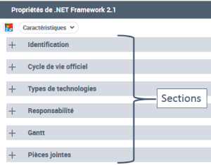 Certaines pages de propriétés sont composées de sections.