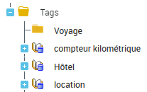 Exemple : déplacez les tags "Hôtel" et "location" dans le dossier "voyage".