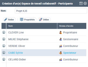 La fenêtre d'ajout des participants apparaît et vous présente comme Propriétaire de l'espace de travail collaboratif.