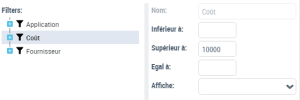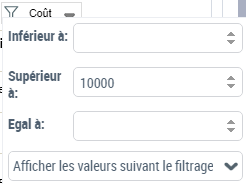 - "Coût", dans le champ Supérieur à, saisissez "10000".
