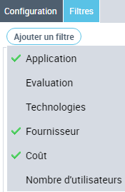 en regard du nom du filtre indique que le filtre est configuré.