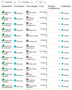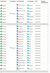 Le résultat du rapport ainsi défini présente les applications triées par niveau d'évaluation descendant. A chaque changement de niveau une rupture indique le nombre de technologies contenues dans ce niveau d'évaluation.
