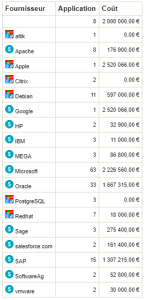 Le résultat du rapport présente les fournisseurs trier par ordre alphabétique et pour chaque fournisseur indique le nombre d'applications et le coût total.