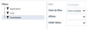 - "Fournisseur", dans le champ Choix du filtre, sélectionnez "Choix multiple".