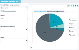 • de type répartition, dans le champ Caractéristique de regroupement vous pouvez sélectionner une caractéristique de regroupement parmi la liste des attributs proposés.