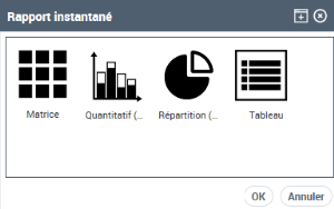 Vous pouvez créer un rapport instantané de type matrice, multidimensionnel, nuage de mots, quantitatif, par répartition ou temporel.