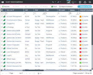 Ex. : avec Report DataSet qui a pour définition "Applications - Technologies", vous pouvez ajouter des applications.
