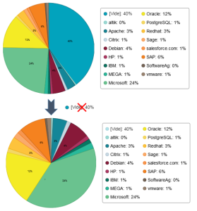 Exemple : dans le graphique qui présente la répartition des applications en fonction des fournisseurs, vous pouvez masquer la série "[vide]" qui représente les applications dont le fournisseur n'est pas renseigné.