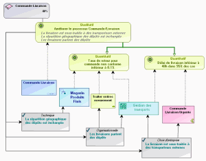 Le projet Commande Livraison a pour objectif d'améliorer le processus Commande/Livraison. Cet objectif qualitatif est trop vague pour être opérationnel. Aussi le décompose-t-on en deux sous-objectifs quantitatifs qui présentent l'avantage d'être mesurables.