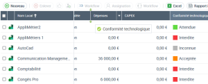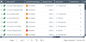 Par exemple, sur la liste des applications, vous pouvez filtrer les applications dont: