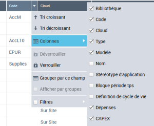 Pour masquer une colonne, désélectionnez la case correspondante.