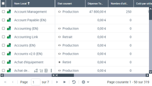 Dans les listes, vous pouvez configurer les colonnes et définir des filtres sur les colonnes.