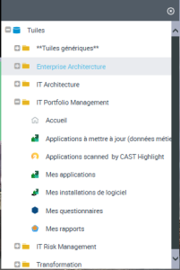 Une fenêtre présente la liste des tuiles disponibles, liées au produit et à votre profil.