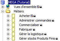 Lors d'un accès en lecture seule à un référentiel, un verrou indique à côté de l'objet que celui-ci ne peut être modifié.