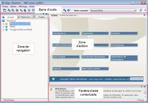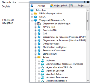 d'une fenêtre de navigation active, dont l'arbre permet d'accéder aux objets du référentiel.