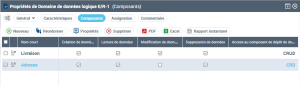 Il est possible d'attacher des objets au domaine de données à travers des composants. Un composant référence un objet (classe ou vue de classe) et définit le type d'accès à l'objet en question (lecture seule, modification, suppression, etc.).