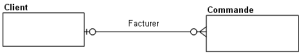 Dans l'exemple ci-dessus, un client peut se voir facturer zéro, une ou plusieurs commandes, et une commande devrait être facturée à un client, mais ce n'est pas obligatoire (problèmes de livraison, etc.).
