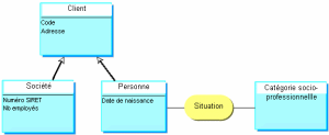 Dans l'exemple ci-dessus, les propriétés, les associations, les rôles et les contraintes spécifiés pour "Client" sont aussi valables pour "Client important".