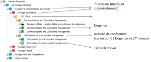 • une activité de conformité pour chaque exigence de premier niveau