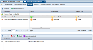 Des risques peuvent être identifiés à différents niveaux lors de l'exécution de la mission. Par exemple, dans le cadre d'une mission d'audit sur l'achat de matériel, un risque sur l'adéquation avec les besoins peut être identifié, tel qu'un mauvais choix technologique.