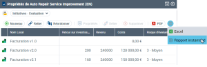 Les boutons PDF et Excel vous permettent de générer des fichiers PDF et Excel des résultats de l'évaluation.