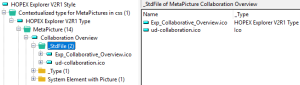 For “Collaboration Overview”, the MetaPicture used in the context of “HOPEX Explorer V2R1 Style”, is Exp_Collaboration_Overview.ico instead of ud_collabortaion.ico.