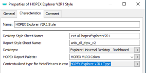 For example: HOPEX Explorer uses “HOPEX Explorer V2R1 Style” style sheet, Solutions like HOPEX GDPR based on Universal Desktop use the “HOPEX V2R1 Style” style sheet).