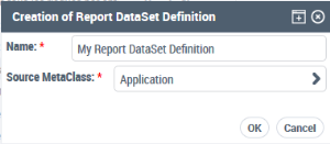 A Report DataSet Definition is MetaClass specific. The Report DataSet Definition creation consists in connecting a source MetaClass (concrete or abstract) to the Report DataSet Definition.