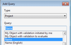 3. Select the object type and the query, for example the "Project" object type and the "Name" query.