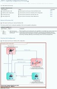 The NCV-3 Capability Configuration Dictionary lists all the capability configurations with their definitions. This list is then followed by a dedicated section for each configuration which includes the diagram describing the configuration and the list of configured capabilities in the configuration.
