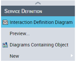 2. In the pop-up menu that appears select the service definition > New > Interaction definition diagram.