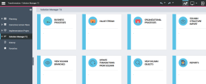 This command opens the tree showing the hierarchy of SolMan objects in HOPEX as well as the business objects associated with this hierarchy. This will be visible after generation of these objects.