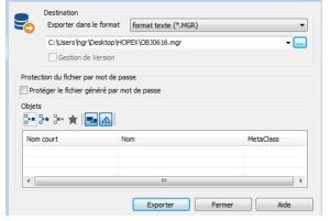 Vous pouvez exporter un objet à partir de votre bureau HOPEX.