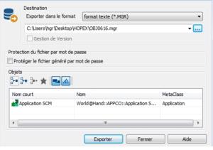 , qui vous permet d'exporter les objets listés ainsi que les objets qui en dépendent.