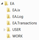 • WORK : contient les fichiers de travail créés par les opérations d'administration effectuées avec l'application d'administration.
