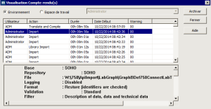 Cette fenêtre permet également de visualiser le fichier de compte-rendu de chacun des utilisateurs de l'environnement. Pour chaque action sont indiqués :