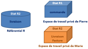 • Pierre ouvre un espace de travail privé, sa vision du référentiel est celle de l'état "n" (R1).