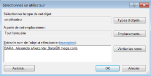 5. Dans le cadre Entrez le nom de l'objet à sélectionner, saisissez le nom de l'utilisateur.