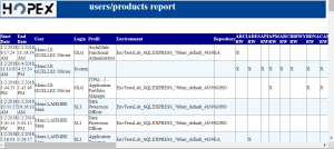 The "users/products report" details the licenses used during all the sessions. It details for each session: