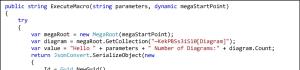 This is where you implement your business logic. You can use all of the HOPËX APIs to retrieve, create, or modify objects in HOPEX. The ExecuteMacro method will be given a string parameter and the MegaRoot Object and will return the desired result in a string.